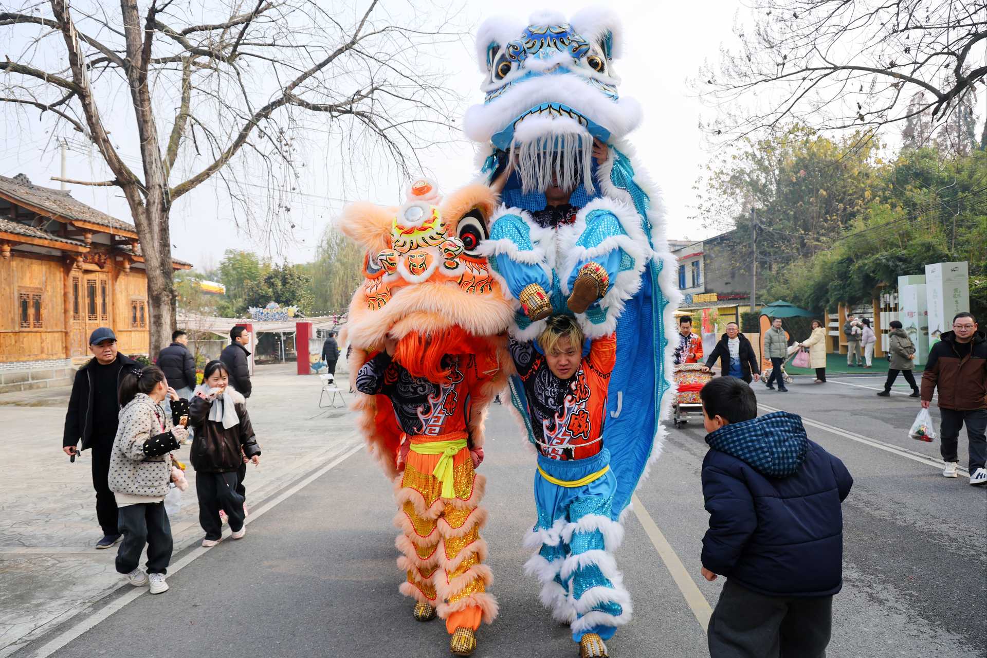 古旗台靠拢竹编、幺妹灯、蒲草编织、糖画等非遗本事展示,每天还有年猪祭动作!古榕片区竖立农趣通顺会,以川西耕具为载体,可以亲手体验农耕乐趣。